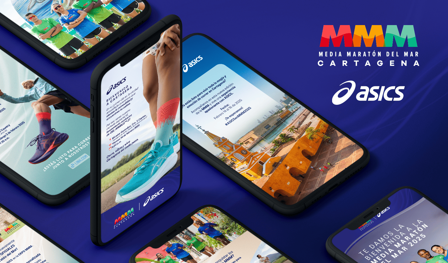 Diseño de piezas publicitarias para la convocatoria de la Media Maratón del Mar, de la cual ASICS es patrocinador.