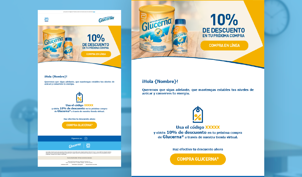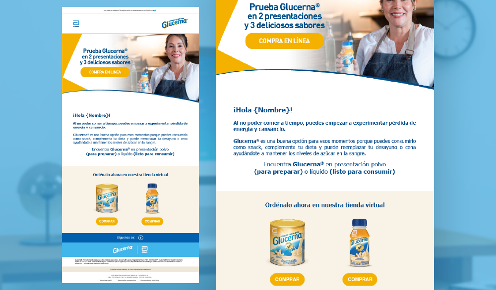 Diseño, maquetación y publicación de email marketing para la campaña de sostenimiento de la tienda virtual de Glucerna.