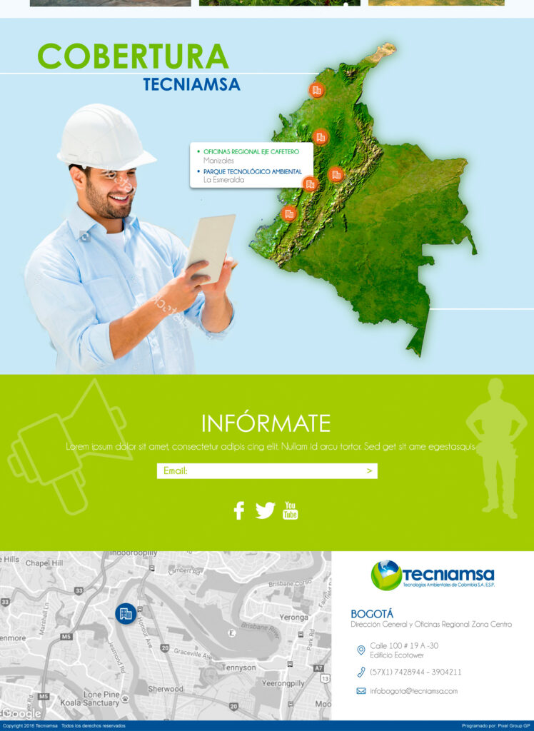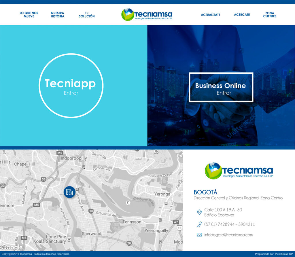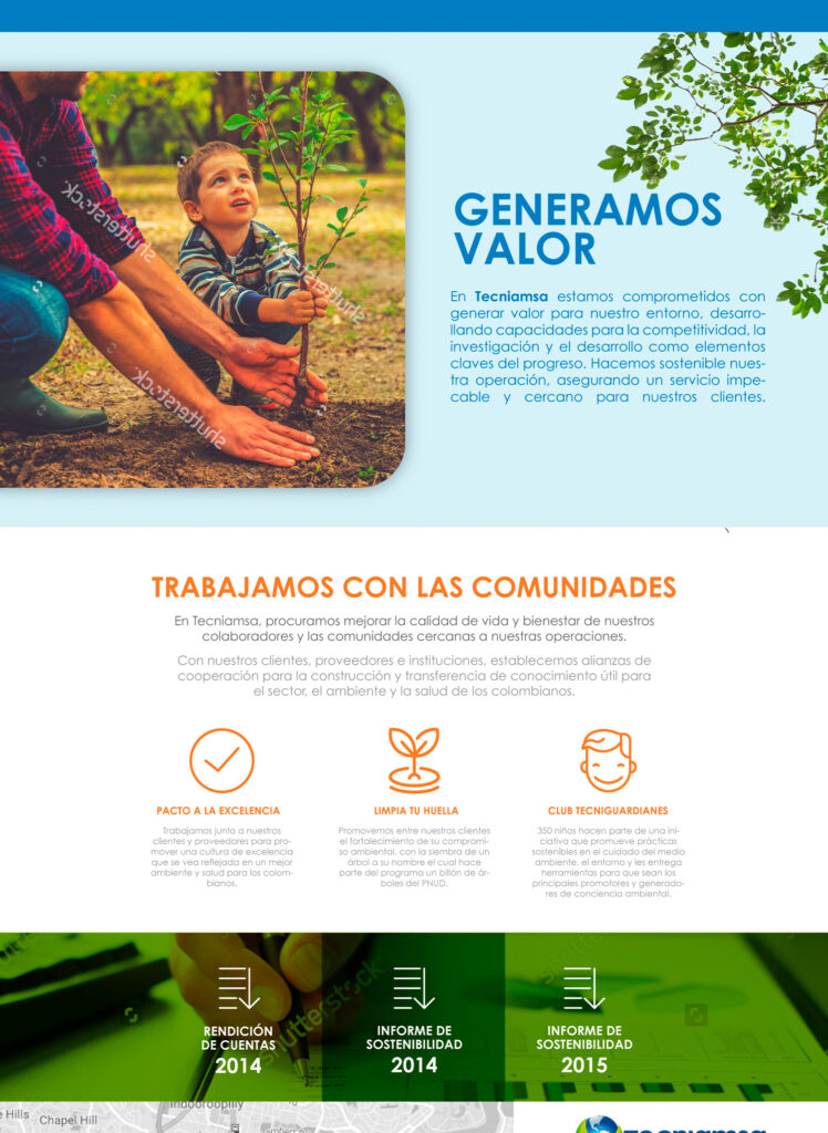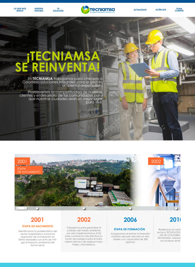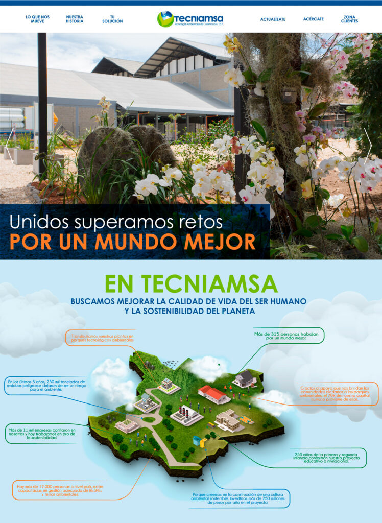 Diseño UI, UX e IXD para la página web de Tecniamsa, una empresa que brinda soluciones integrales para una gestión ambiental responsable en cuanto a residuos y agua.